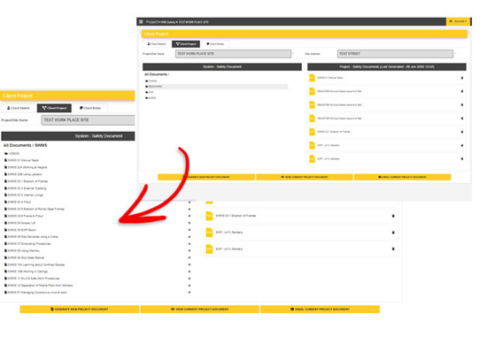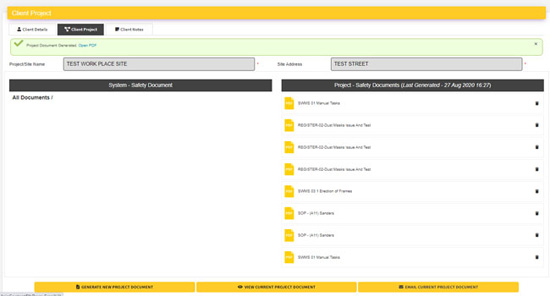 4. You can generate the selected document to a “Safety System” for the specific work site. You can view the PDF documents or email the documents to whomever needs to see a copy of the safety system documents